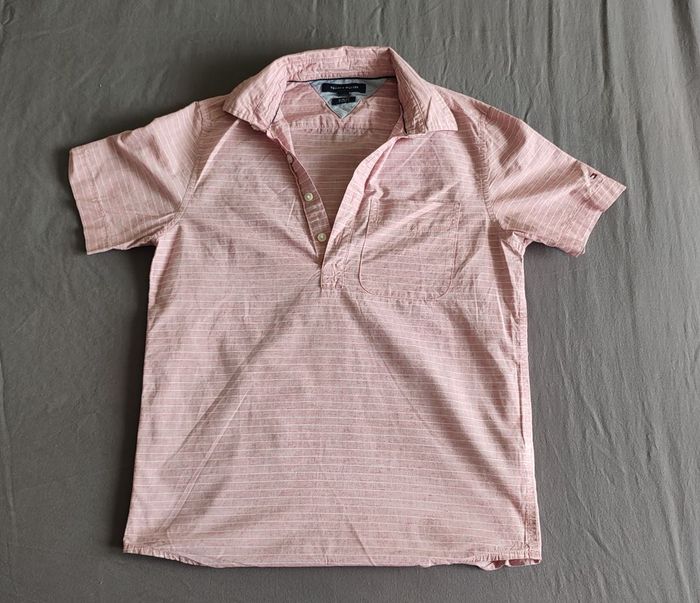 Vêtement Homme Chemise manche courte rose clair Tommy Hilfiger taille XS Slim Fit coupe étroite #Ret - photo numéro 1