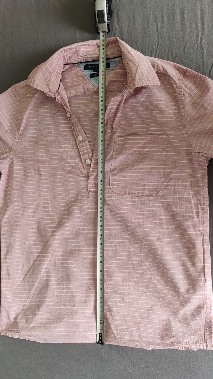 Vêtement Homme Chemise manche courte rose clair Tommy Hilfiger taille XS Slim Fit coupe étroite #Ret - photo numéro 7