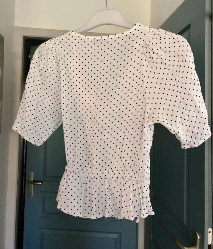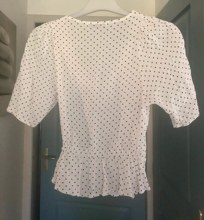 Blouse blanche cache cœur à pois Pull & Bear taille XS - photo numéro 5