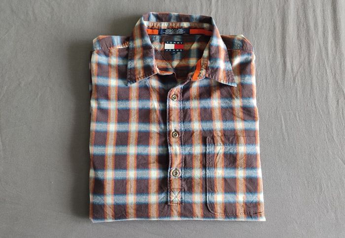 Vêtement Homme Chemise marron à carreau Tommy Hilfiger jeans taille L #Retrostreet - photo numéro 1