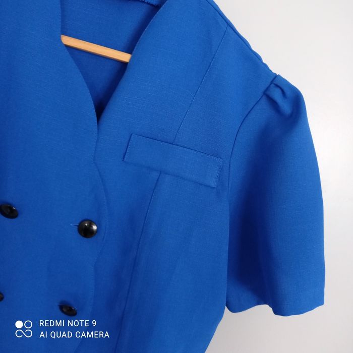 Joli bleu dur bien flashy. Jolie découpe arrondie. Élégant. Vintage. Taille estimée. Mesures prises à plat : épaules : 43cm, aisselles : 59cm, longueur : 64cm. C7