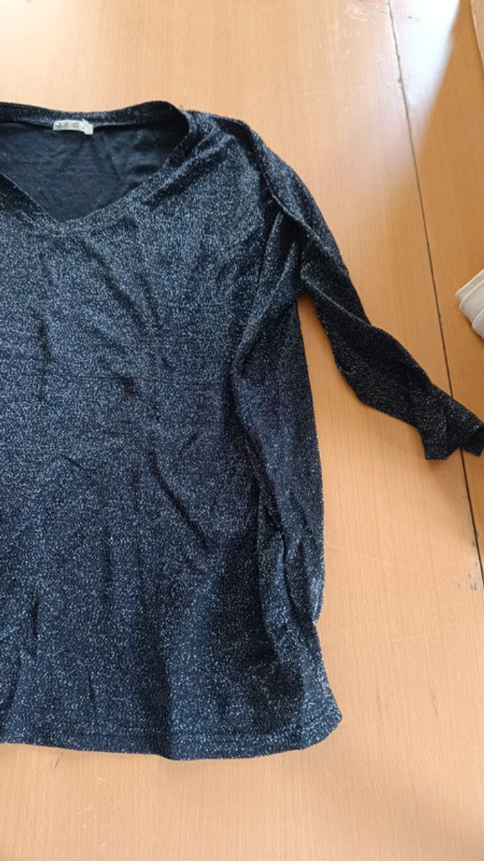 Haut manches 3/4 noir à paillettes - photo numéro 2