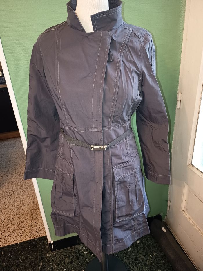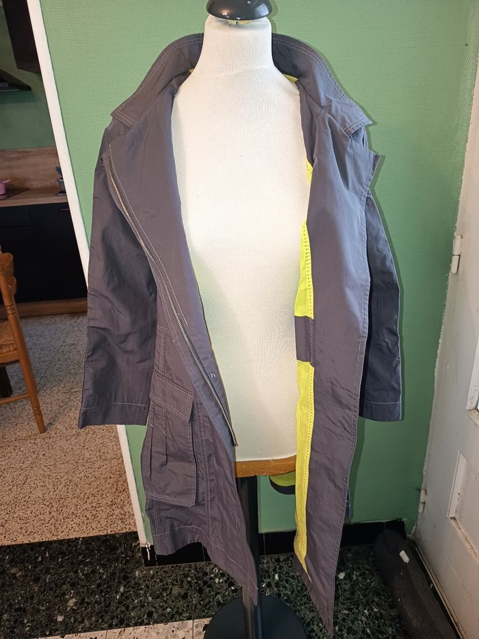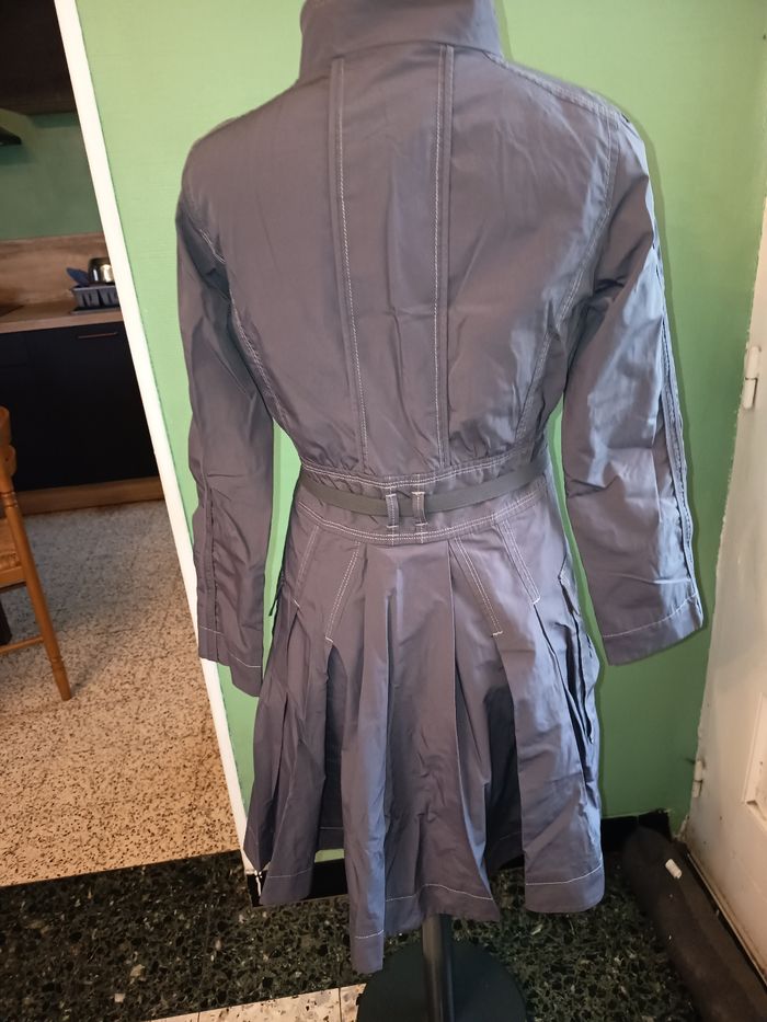 Trench imperméable long Gris Ferme avec un zip et une ceinture Taille 38 62% polyester / 38% coton #impermeable #trench #long #gris #femme #38 #marylene025femme38