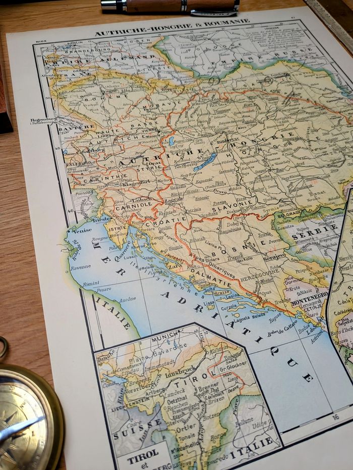 ⚠️Cadre non inclus⚠️ 🧭 Affichons Les Oubliées ! 🧭 Pour une décoration Vintage et Authentique, à s'offrir ou à offrir ! Voyagez dans le temps et partez explorer l'Autriche-Hongrie et Roumanie, avec cette magnifique carte géographique, détaillée et colorée, imprimée à Paris en 1900. Il s'agit d'une impression ancienne authentique et non d'une reproduction moderne. Nous vendons uniquement des impressions originales qui ont traversé le temps avec un véritable aspect patiné. 📏 Dimensions carte : L29cm x H35cm 📦Envoi rapide, protégé et soigné Les affiches sont envoyées à plat dans une pochette plastifiée et une enveloppe carton rigide. Emballages soignés et personnalisés N'hésitez pas à nous demander d'insérer un message personnalisé si vous souhaitez offrir cette commande pour une occasion spéciale. 🔎 Les articles sont notés en "bon état" au vu de leurs âges, bien évidemment ils présentent certaines marques du temps passé. Les photos vous permettront de voir l'état réel car l'objet en photo sera celui expédié, il n'y a pas de stock. 🚚 Livraison France et international 🔑 Mots-clés : 🔑 Mots-clés #ireland #deutschland #osterreich #italia #portugal #espana #AfficheVintage #AfficheAncienne #GravureAncienne #CarteAncienne #AfficheBotanique #AfficheZoologique #AfficheGéographique #AfficheDeVoyage #AfficheArchitecture #DécorationMurale #ArtVintage #AfficheMurale #AfficheIllustrée #ArtAncien #GravureMurale #AfficheDeVille #AfficheHistorique #AfficheRetro #AfficheÉducative #AfficheDécorative #AfficheDeCollection #DécorVintage #AfficheCuriosité #AfficheScolaire #ArtDeMurVintage #brocantevisuelle #imagerieancienne #histoireEtGéographie #EstampeClassique #CartographieVintage #VieillesCartes #AmbianceRétro #CabinetDeCuriosités #HistoireNaturelle #Serbie #Bosnie #Suisse #Allemagne #Croatie #Bucarest #Alpes 70