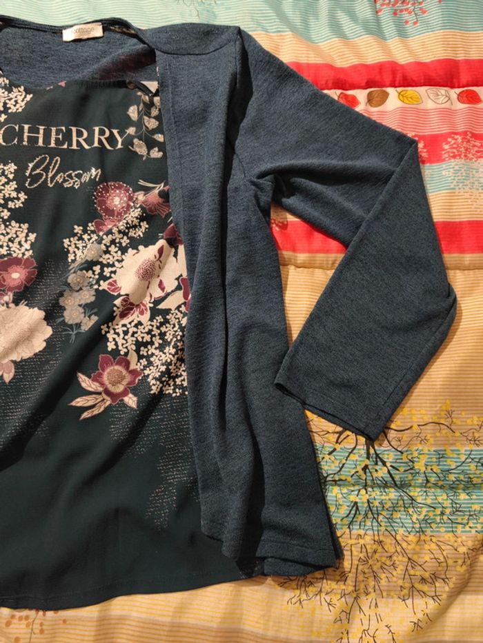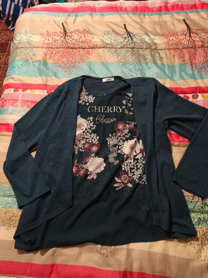 En très bon état étiquettes coupées Tee shirt effet gilet par dessus Aisselle à aisselle 57 longueur de dos 69 longueur des manches 64 #estrella17230femmet42