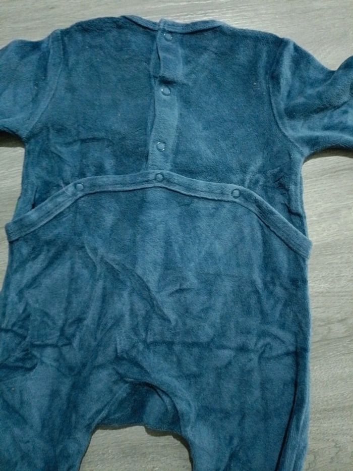 Grenouillère douce et chaude en très bon état (aucune tache ni trou). Marque : Kiabi Taille : 6 mois Matière : velours tout doux, idéal pour l’hiver Couleur : bleu marine Motif : grand dessin de crocodile sur le devant Ouverture : à l’arrière, pratique pour le change Parfaite pour garder bébé bien au chaud avec style et confort !