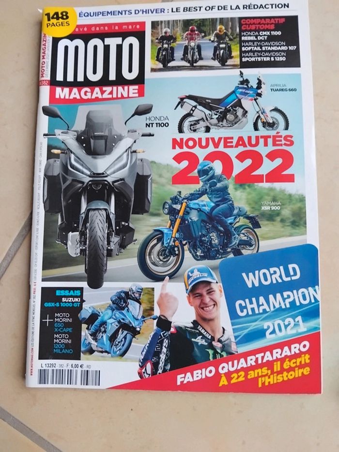 Bonjour. Je vous propose ce lot de 11 moto magazine de l année 2022. Ils sont en très bon état, seul un présente un défaut la peinture part, s effrite. Voir photo jointe. Prix 6 euros