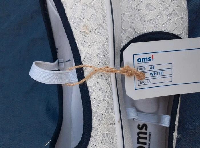 Ballerines Bout rond Talon plat Elastique de maintien sur le dessus Composition : Dessus : textile Intérieur : synthétique Semelle : synthétique Une petite tâche sur le côté de la dentelle. Cf photo. Pointure : 35 Coloris : blanc Prix : 9 € #sisterkayachaussurefille35 Réf : à.ii +1
