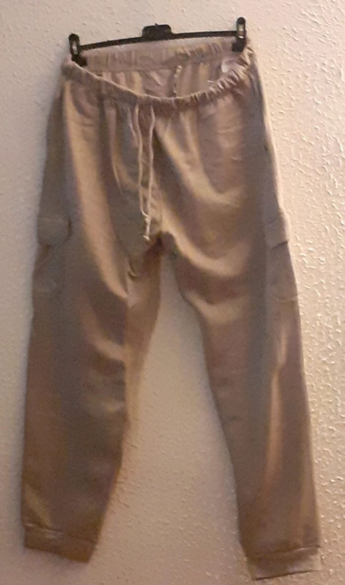Pantalon molleton cargo Bas resserrés. Entrejambe 78 cm env. Composition • Molleton 50% coton, 50% polyester Taille : 56/58 Coloris : beige Prix : 13€ Neuf jamais porté #sisterkayahomme56 Réf : b.ii+1