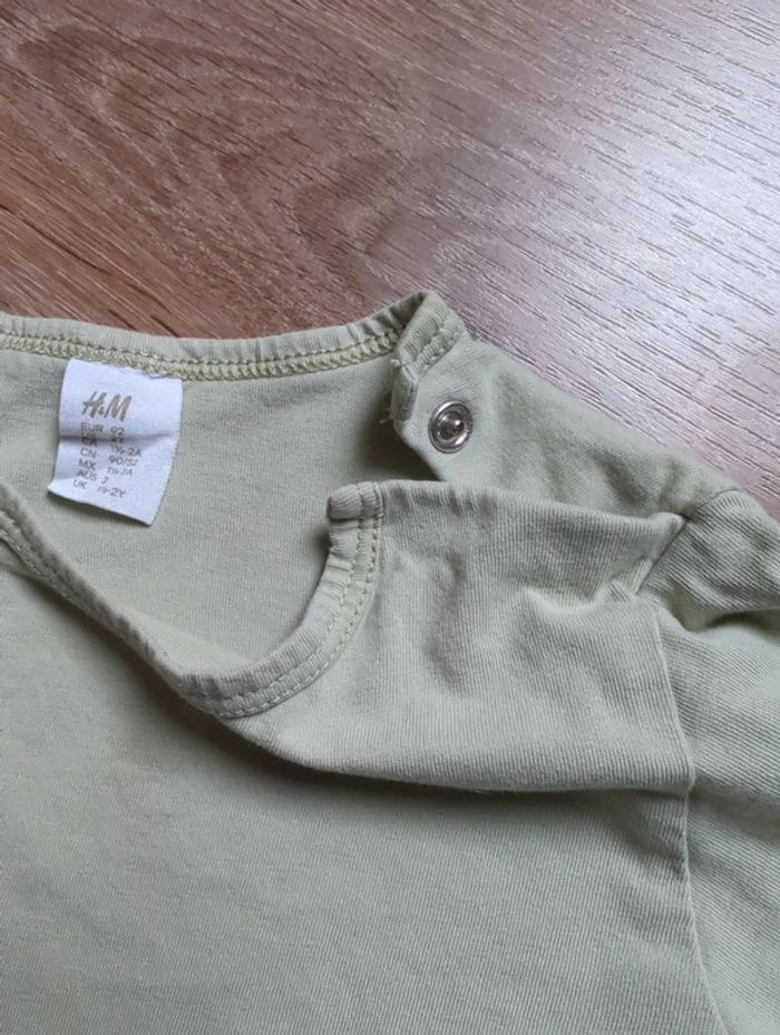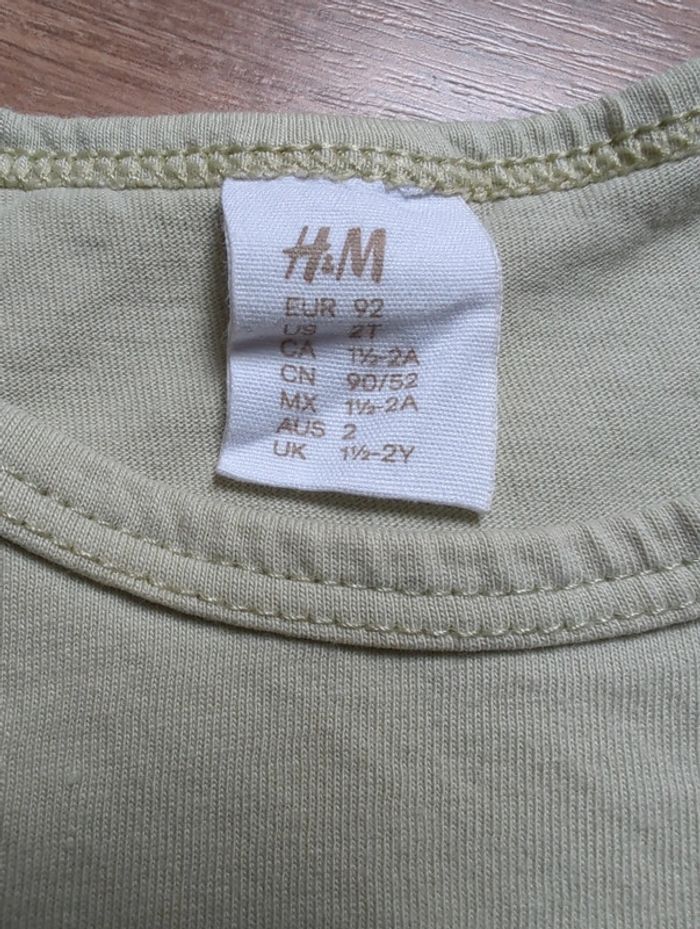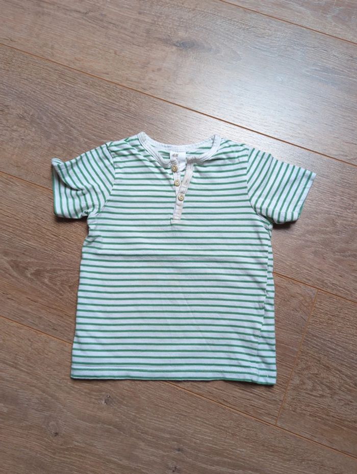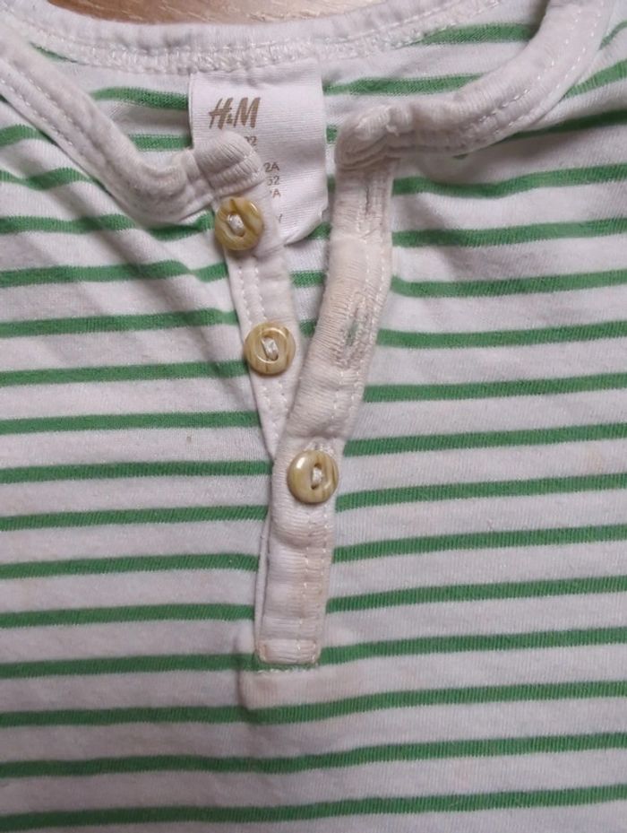 Lot 2 t-shirt H&M 24 mois 92 cm Coton Manches courtes Défaut : tâche sur les boutons du blanc à rayures vertes (voir photo)
