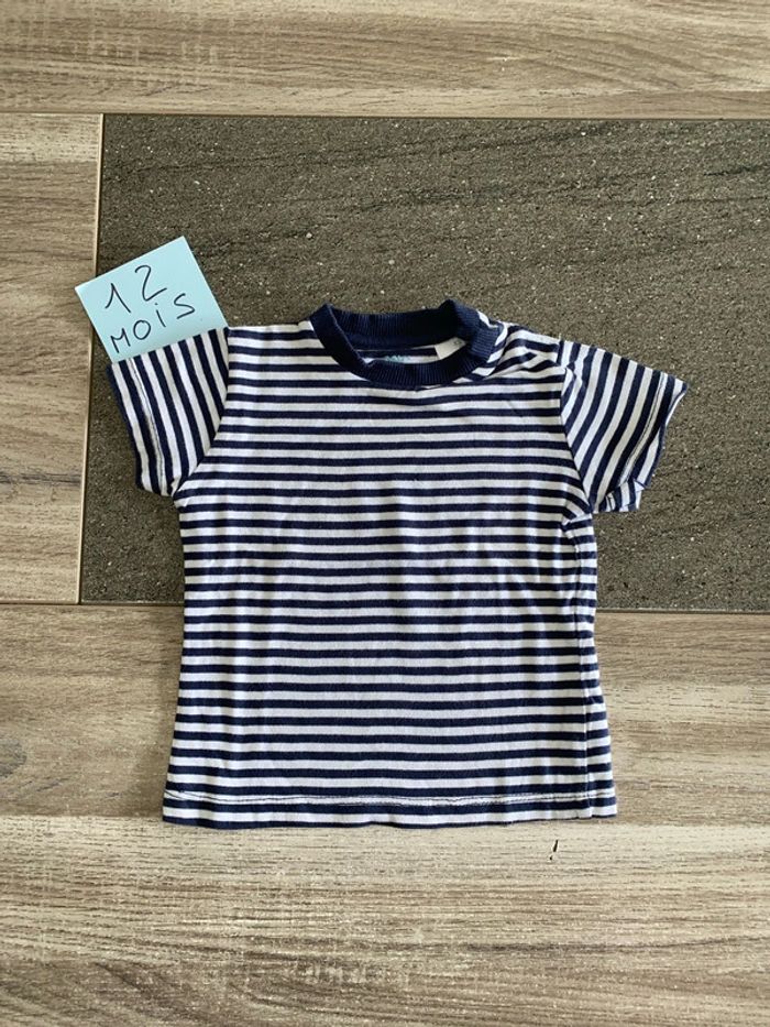 Tee-shirt Marine et blanc 12 mois