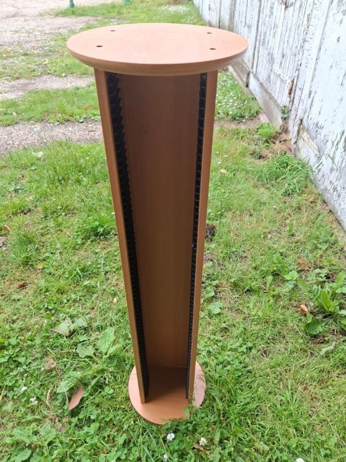 Vends tour range cd en bois Nombre de rangements : 68 Hauteur : 97 cm Largeur base : 24 cm Excellent état comme neuf