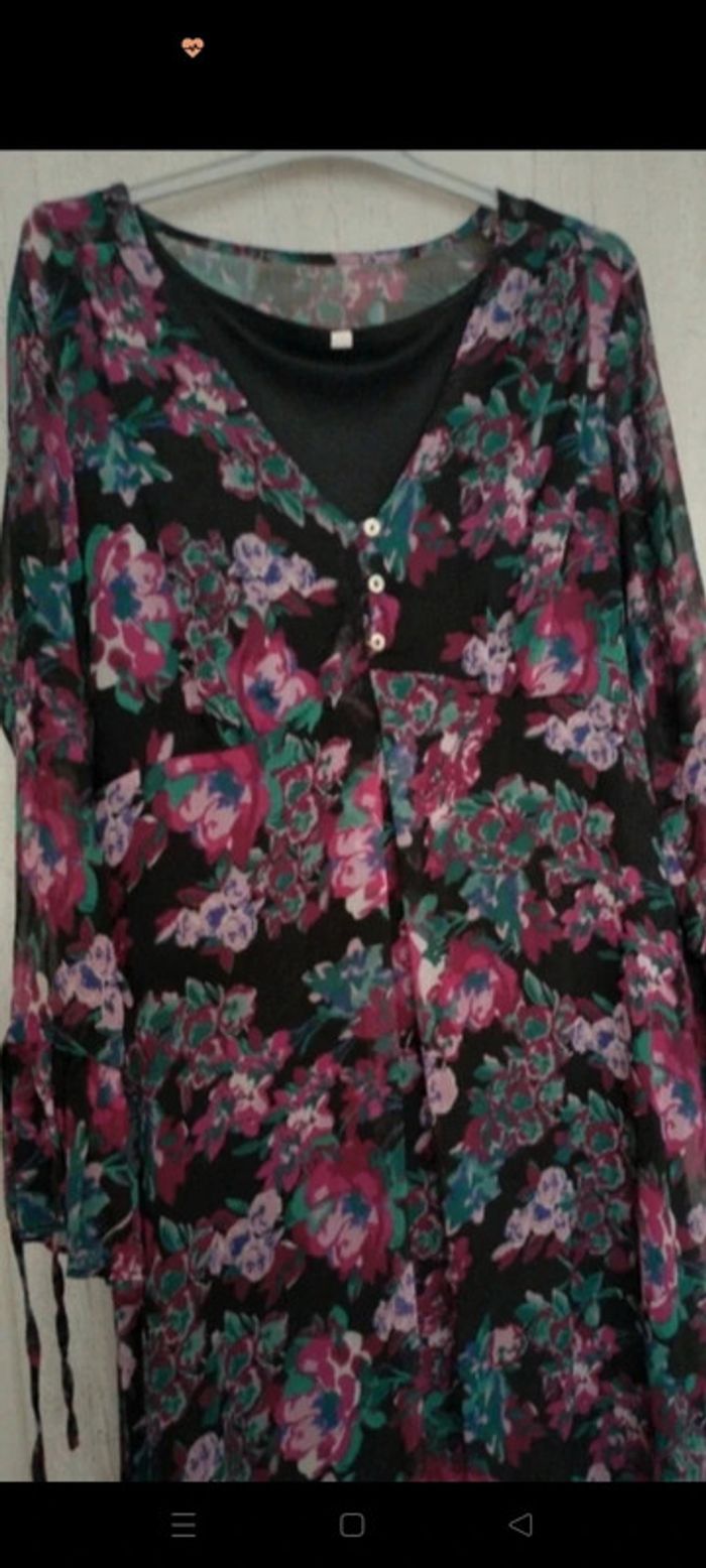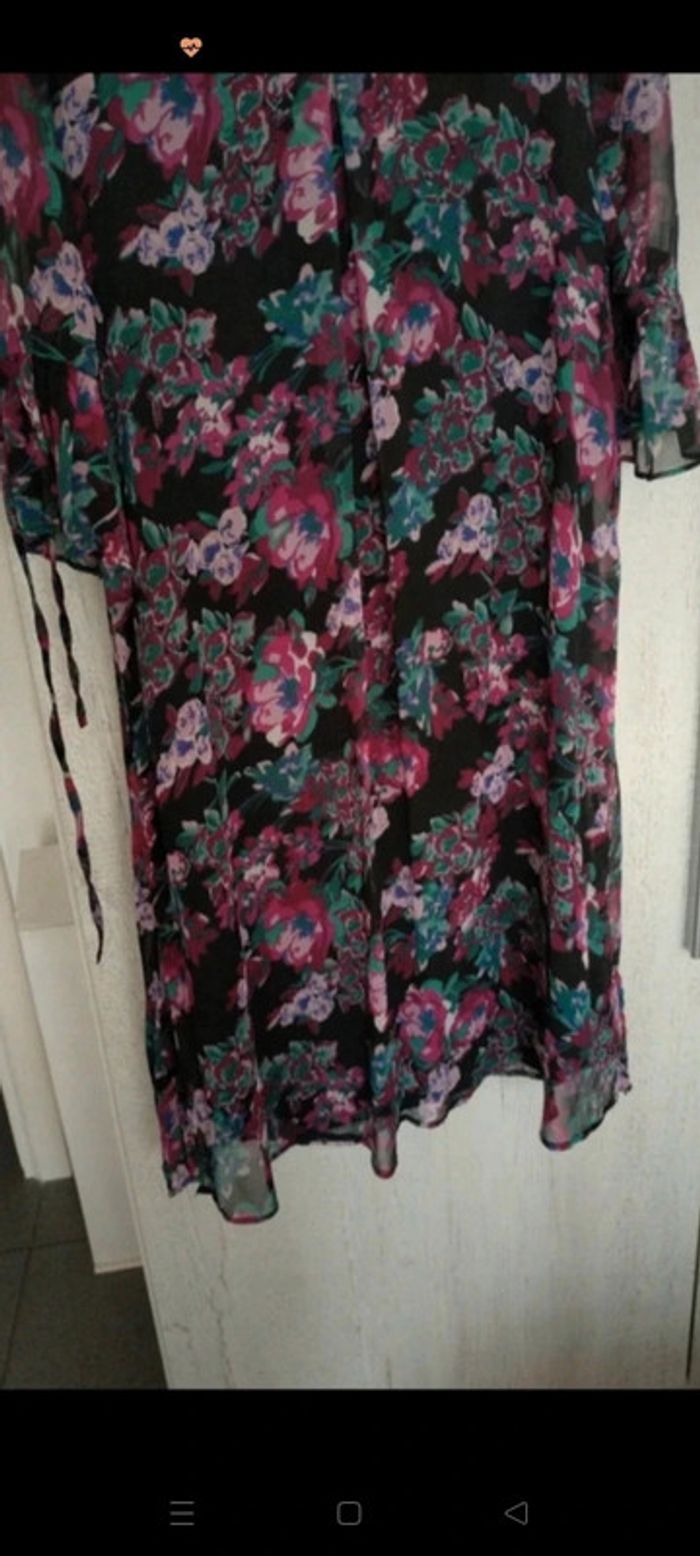 Avec une robe noire en dessous qui peut même se porter seul et une autre en voile a motif floral au dessus...état absolument neuf impeccable