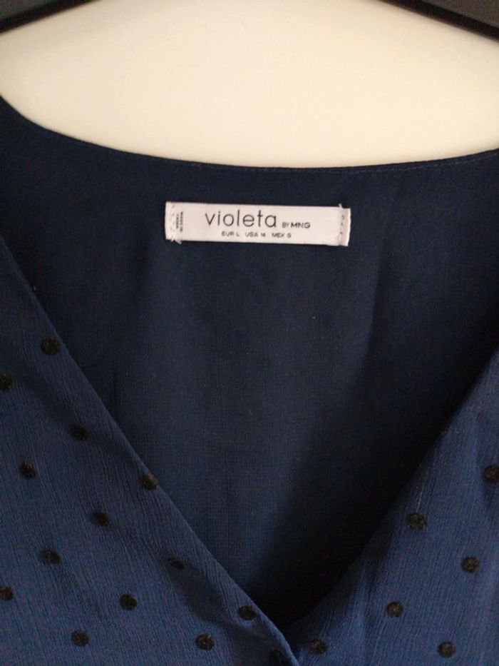 Violetta by Mango taille grand manches transparentes tout le reste doublée absolument comme neuve convient jusqu' a un 46 sans le moindre problème.
