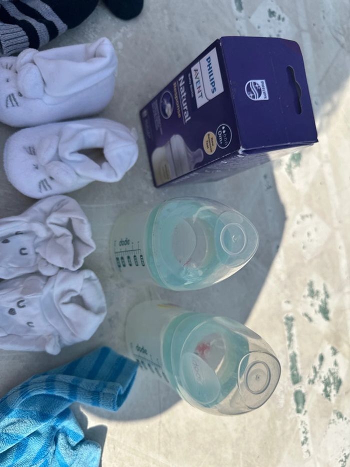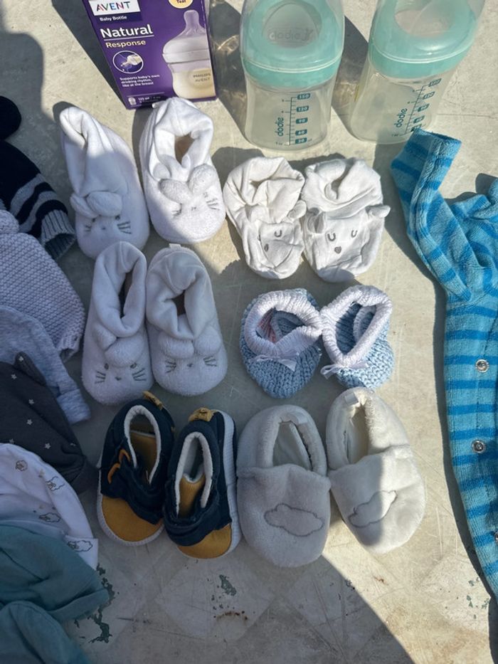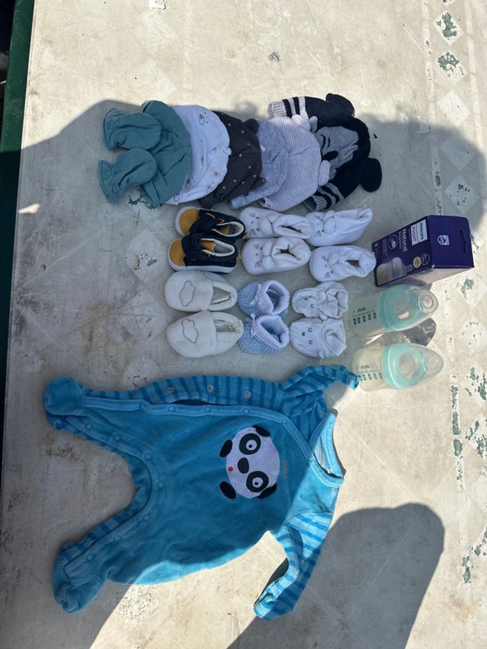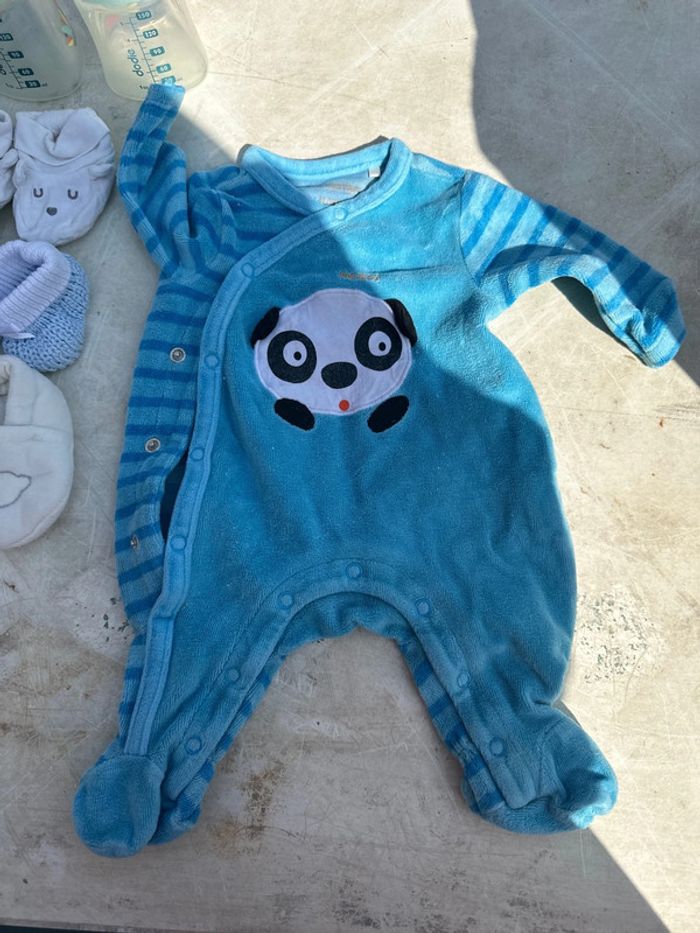 Bonjour je vend un lot naissance 2 biberon dodie sans tétine 1 biberon avent 6 paire de chausson chaussure 1 paire de moufle 1 pyjama 6 bonnet