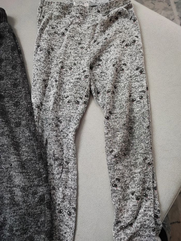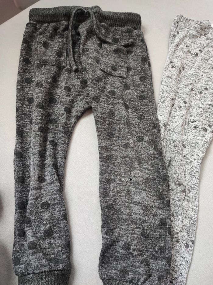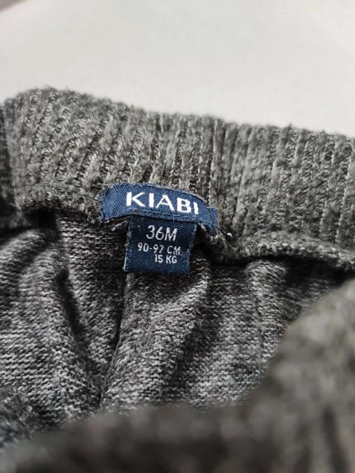 En bon état général, le gris foncé de la marque Kiabi a un petit trou au niveau des genoux.