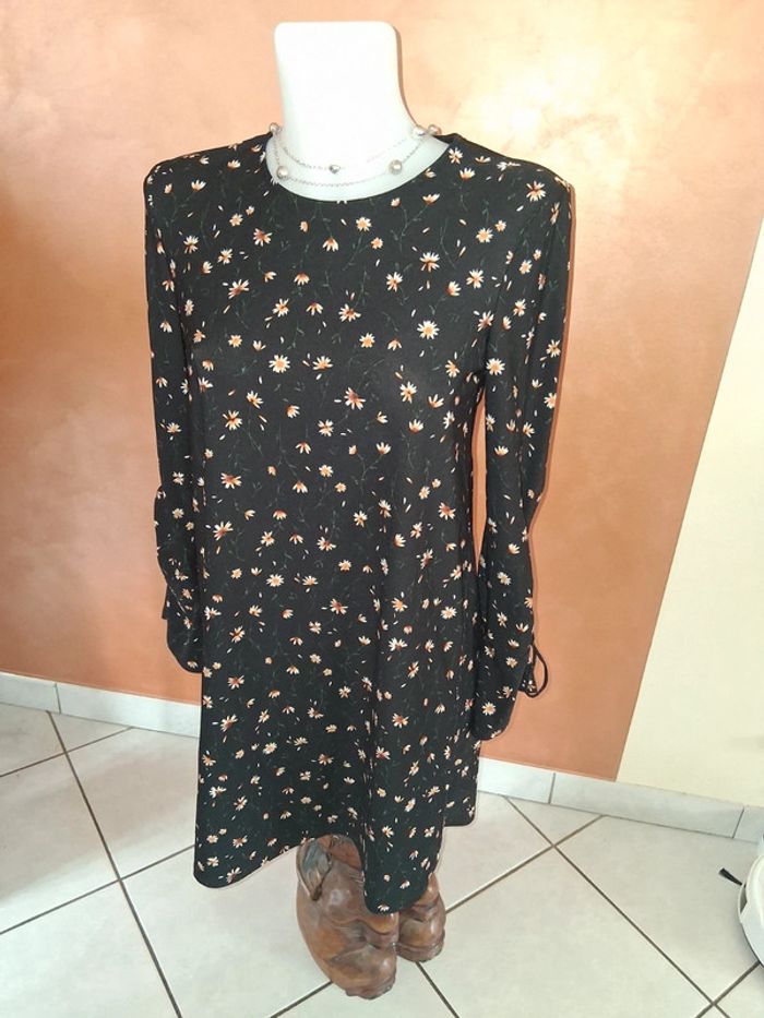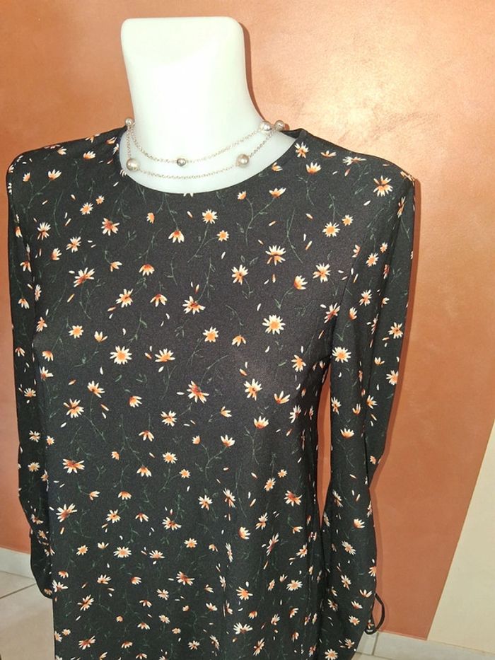 Robe noire à fleurs jaune manche longue Mango - photo numéro 2