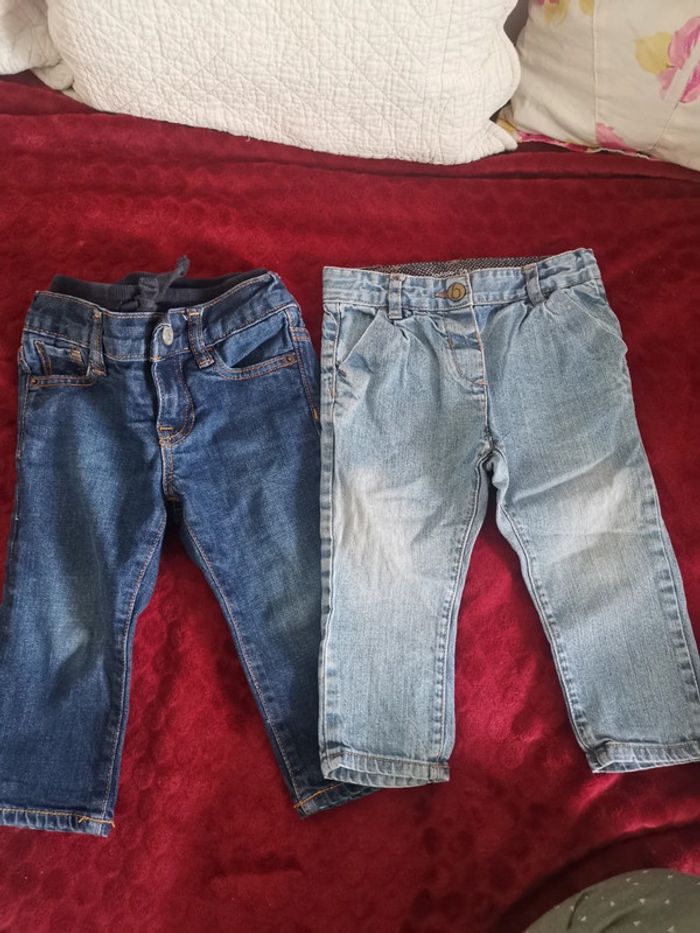 Jeans 18-24 mois sans marque et Jeans Bout'chou 18 mois.