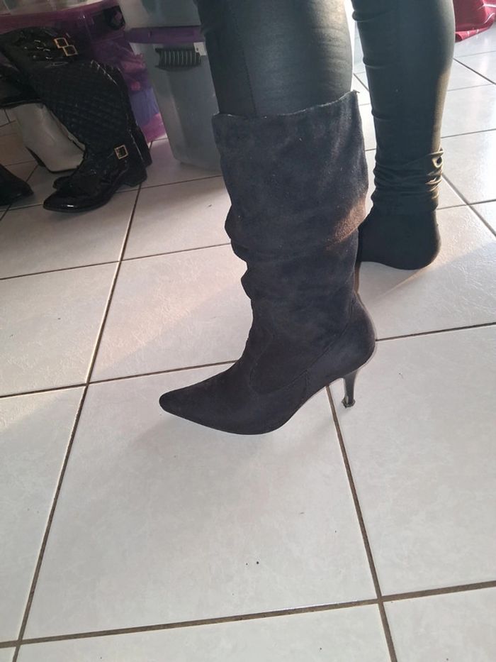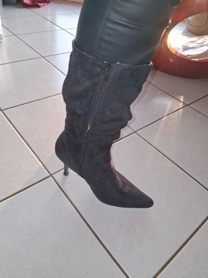 Bottes noire à talons aiguilles effet velours - photo numéro 3