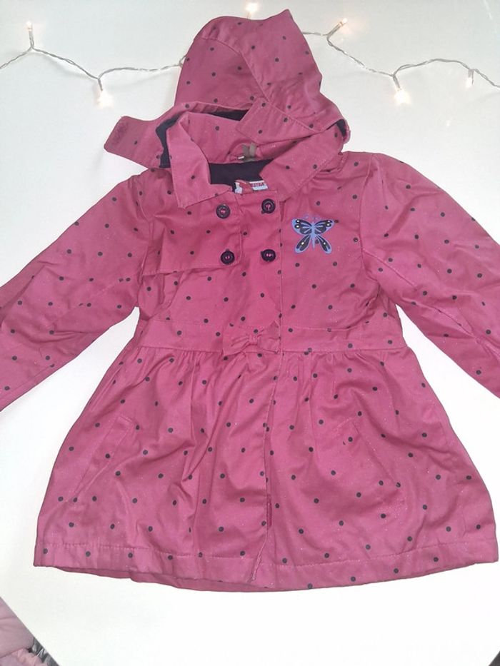 Veste coupe vent avec capuche rose à pois bleu marine Orchestra - photo numéro 1