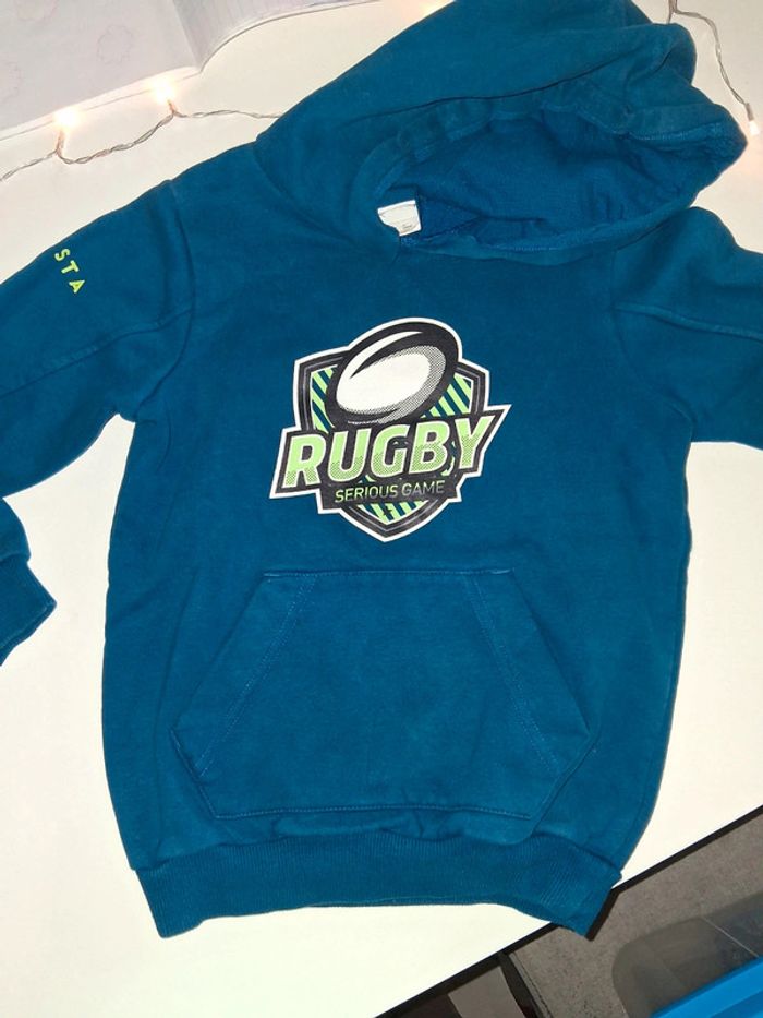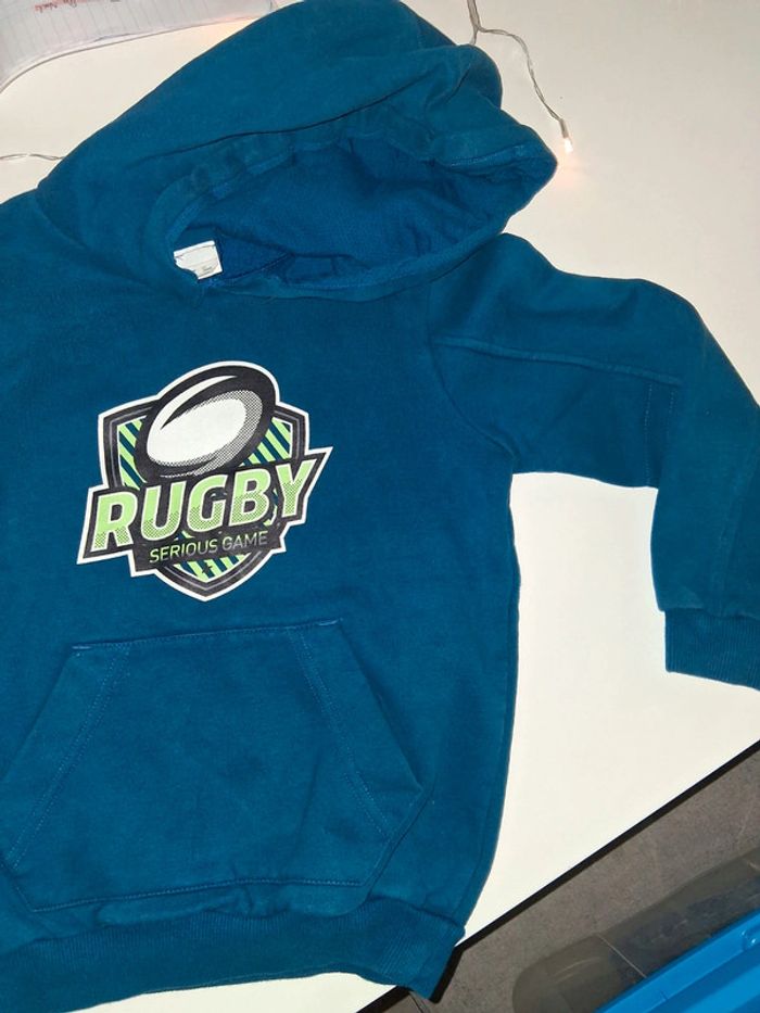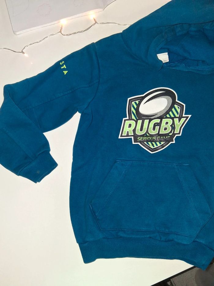 Sweat bleu avec capuche Rugby - photo numéro 2