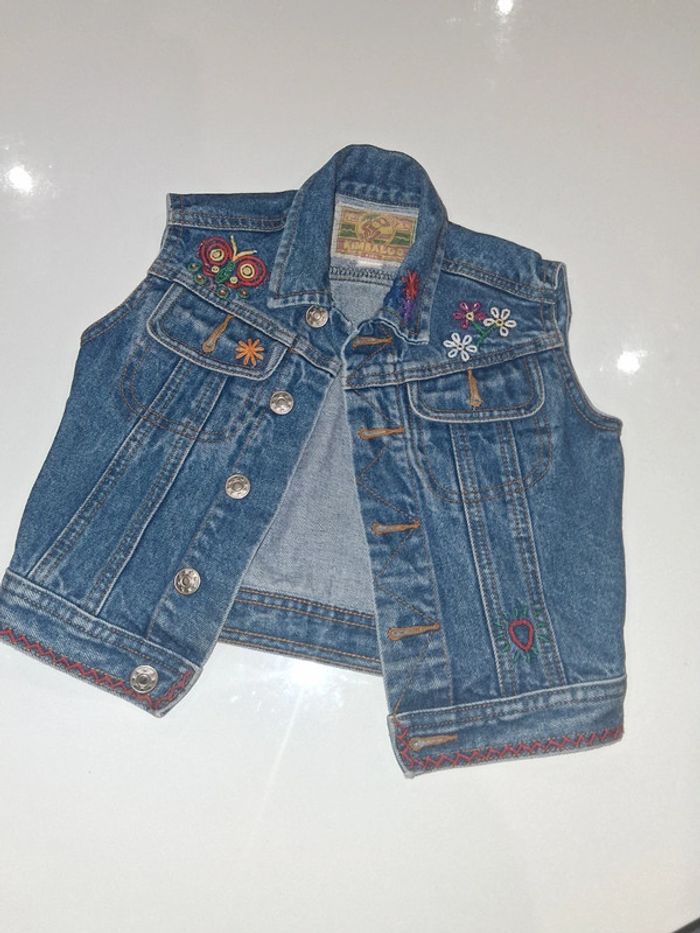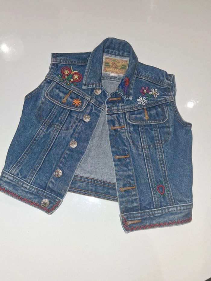 Veste sans manche en jean à fleurs Kimbaloo - photo numéro 1