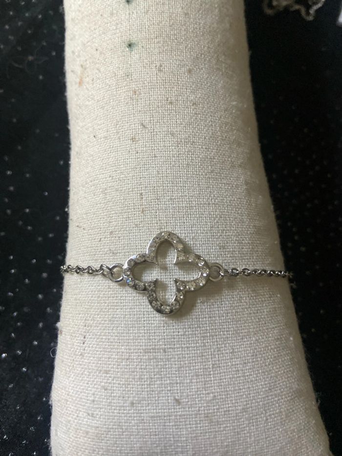 Bracelet argenté trèfle zircone