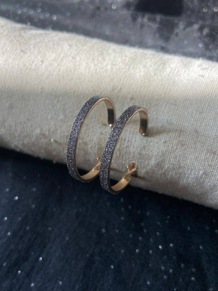 Boucles d'oreilles dorées grises 30mm - photo numéro 1