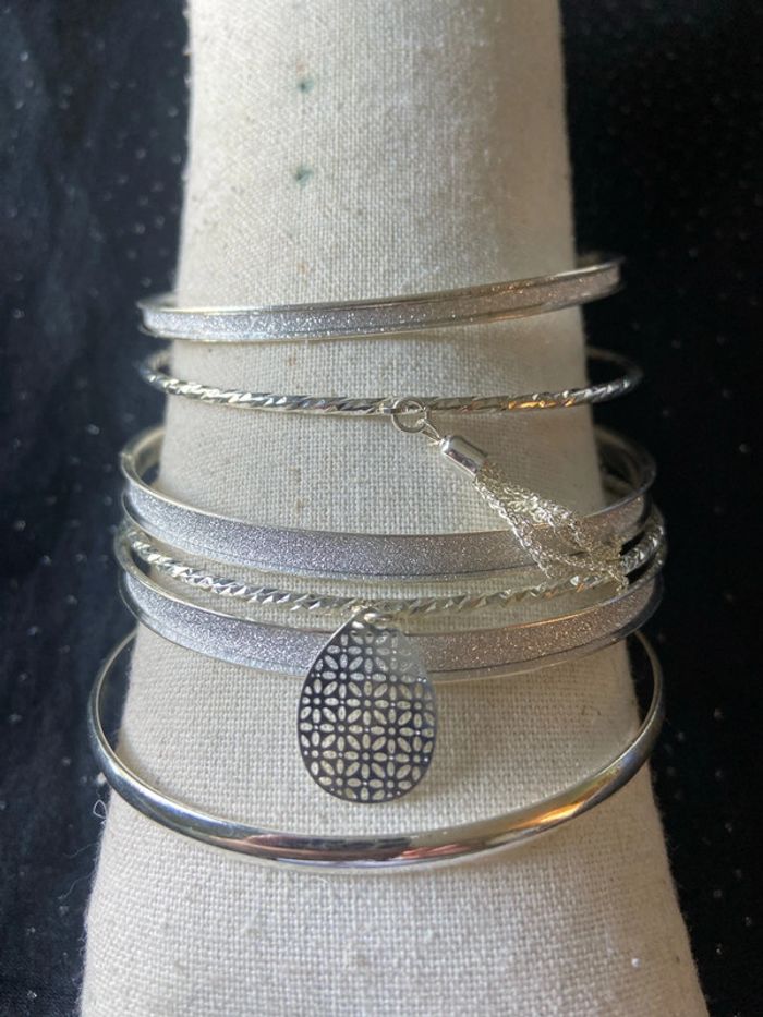 Lot bracelets argentés blanc pailletés