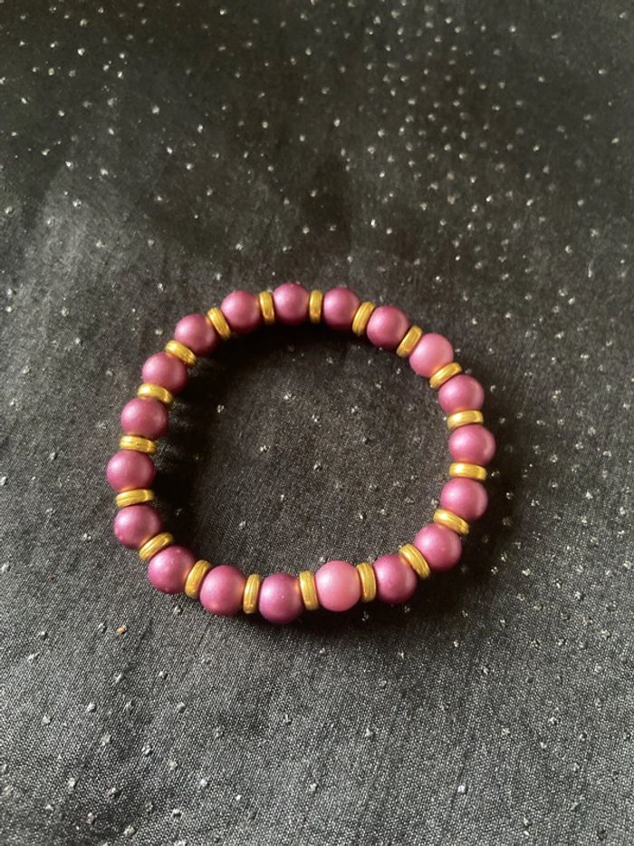 Bracelet perles violettes dorées