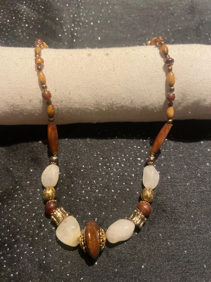Collier fantaisie bohème marron beige