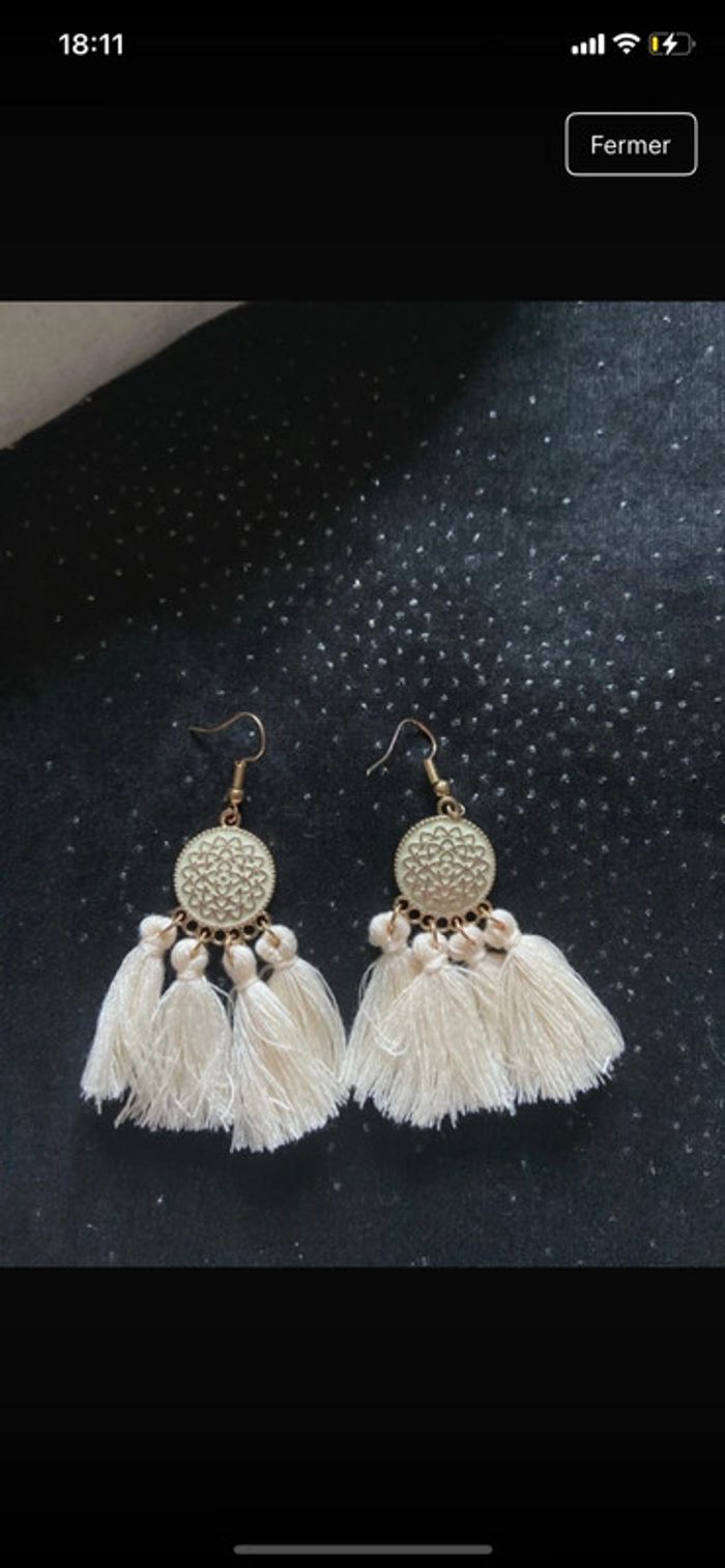 Boucles d'oreilles bohème beige dorées