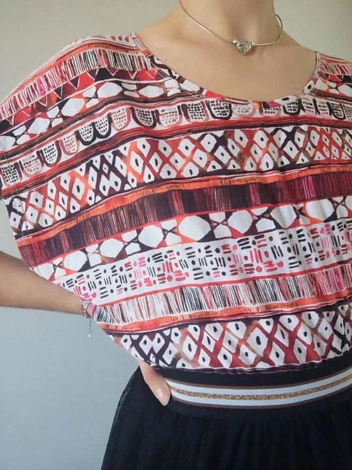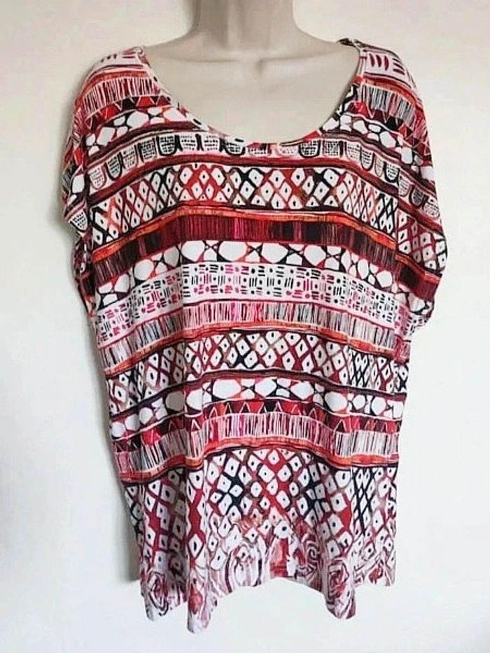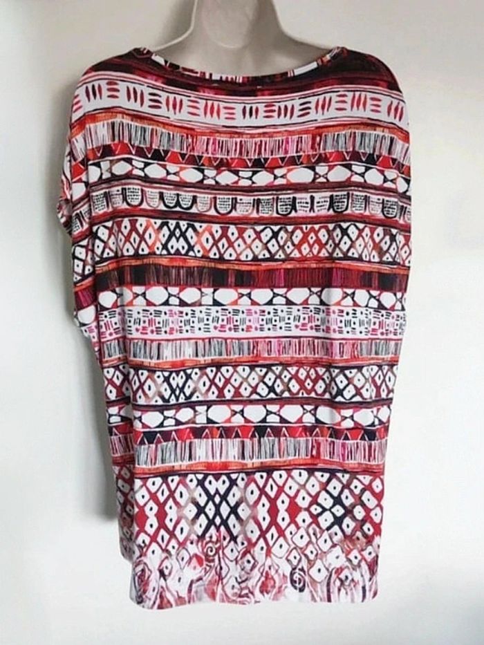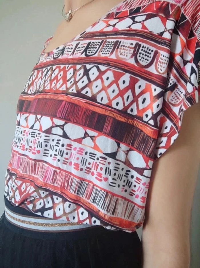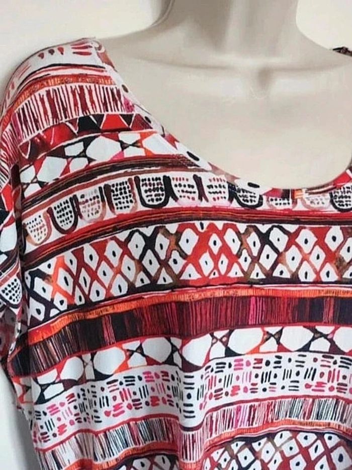 Tee-shirt imprimé aztèque rouge blanc noir / Christine Laure - 38/M oversize à 46/XXXL - photo numéro 9