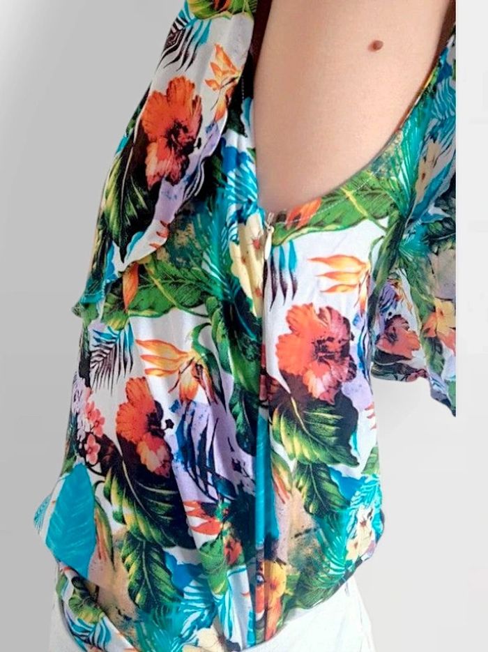 Débardeur asymétrique volant fleur multicolore tropical / Longboard - 40/L - photo numéro 5