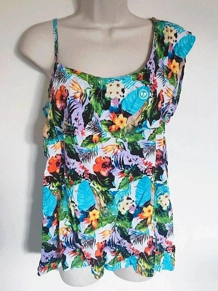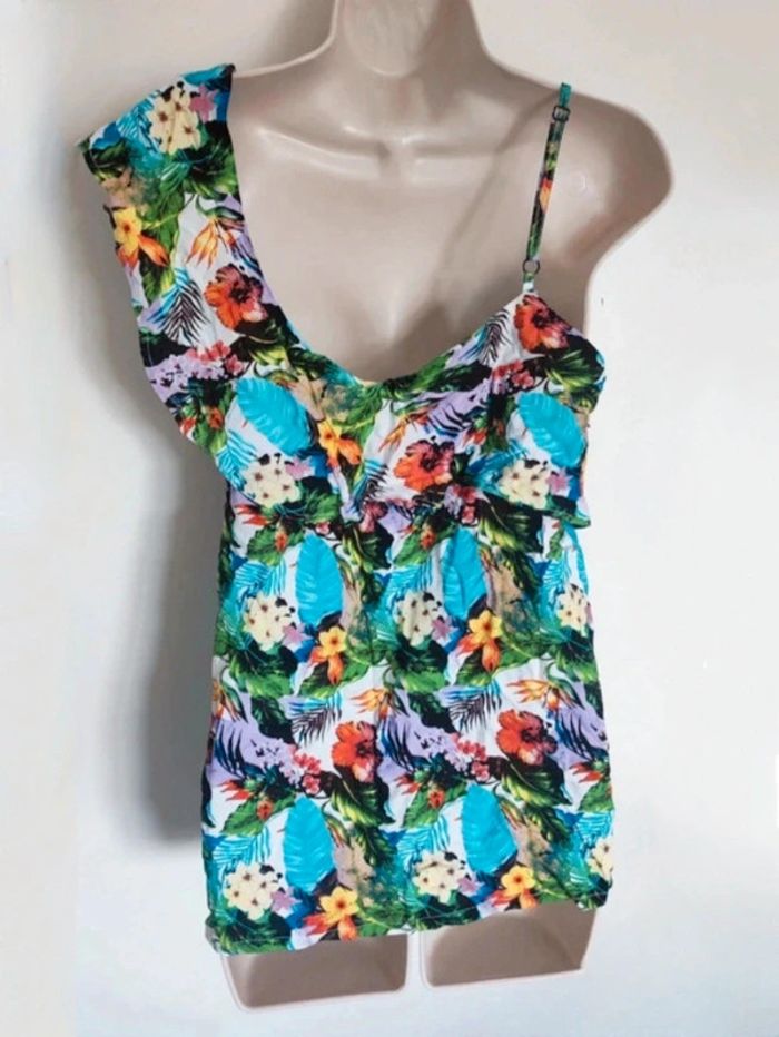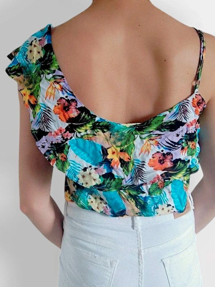 Débardeur asymétrique volant fleur multicolore tropical / Longboard - 40/L - photo numéro 1