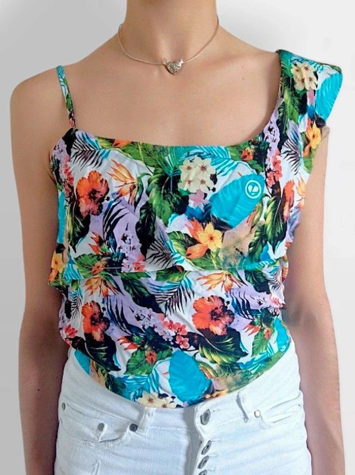 Débardeur asymétrique volant fleur multicolore tropical / Longboard - 40/L