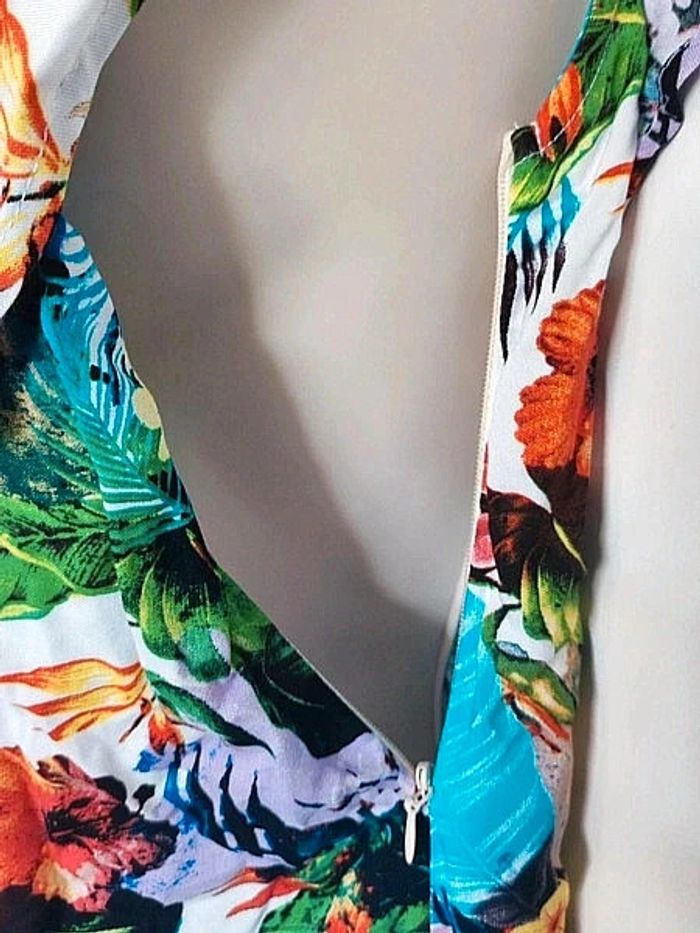 Débardeur asymétrique volant fleur multicolore tropical / Longboard - 40/L - photo numéro 8