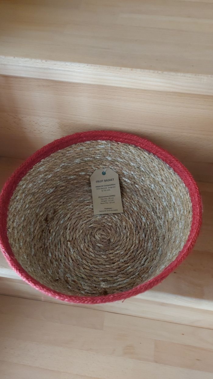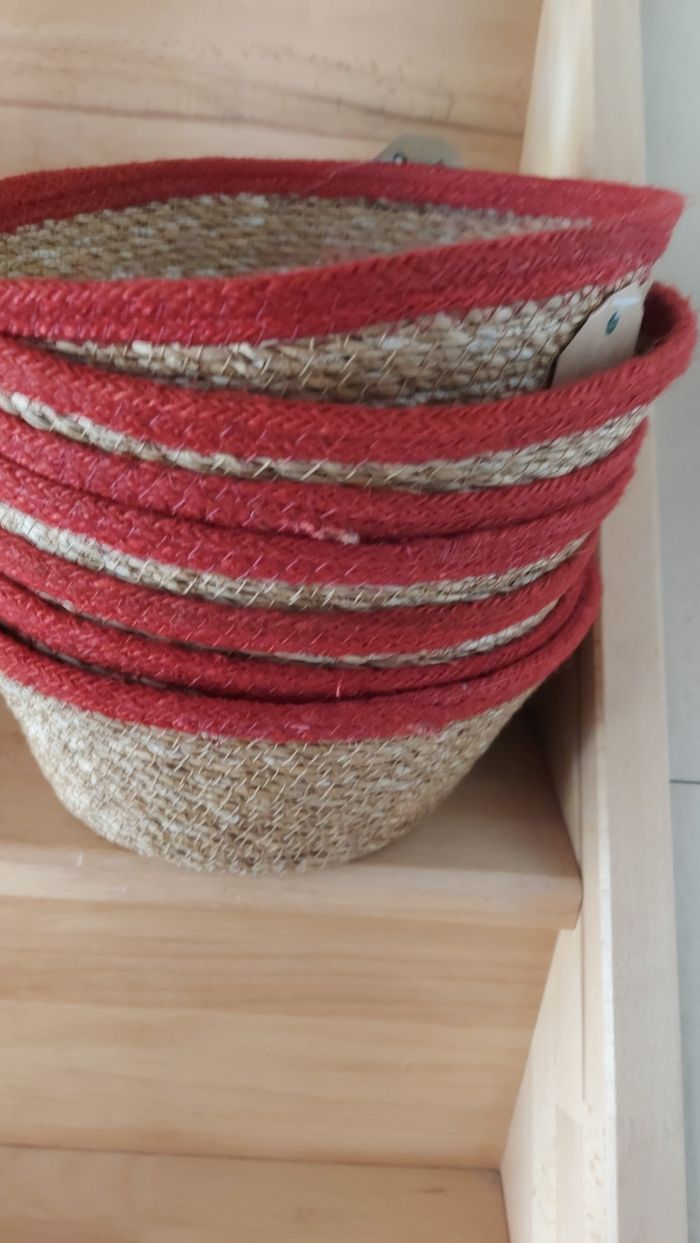 Panier en rotin bord rouge Ht 12 x diamètre 26 cm 7 disponibles Neuf avec étiquette