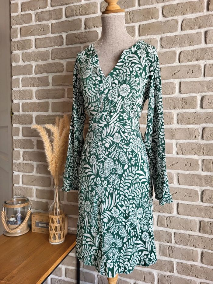 Belle robe imprimée fleuri verte et blanche - Kiabi - photo numéro 1