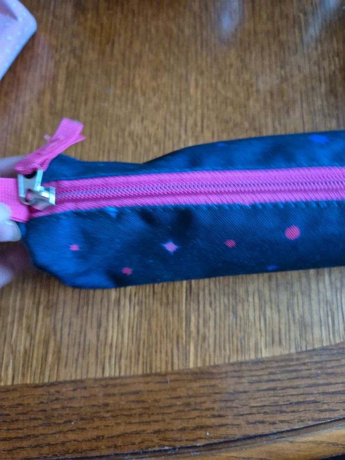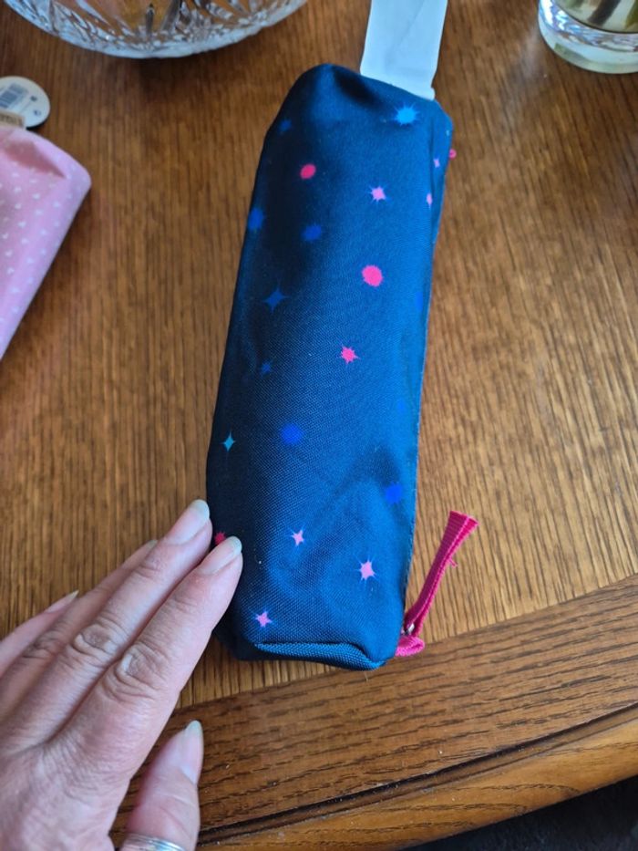 ⬇️mes autres annonces de sac 👉 #cg89sac Une trousse neuve sur fond bleu marine avec tache en forme d'étoile de diverses couleurs. La fermeture est rose fushia, c'est un très joli contraste. Neuve, elle n'a jamais servie #trousse #scolaire #ecole