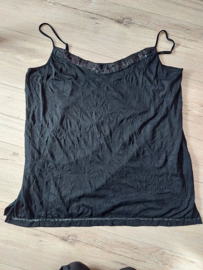 Débardeur sequins noir, fines bretelles réglables, MS mode, t.XXL, plutôt pour un 46/48