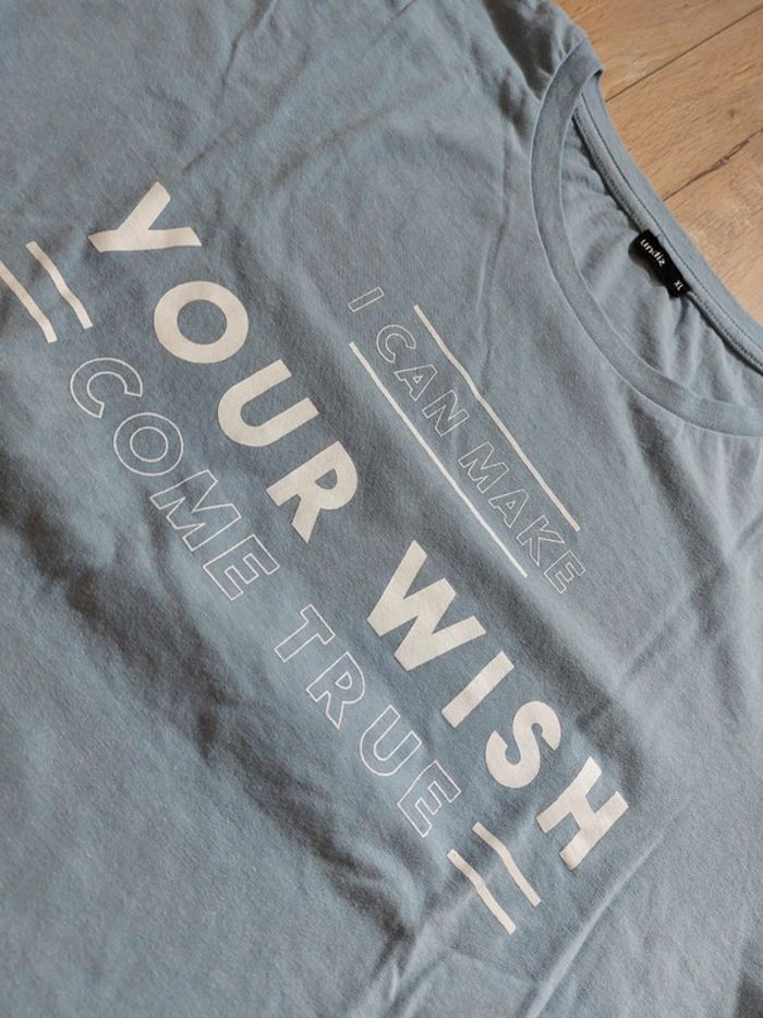 T shirt Undiz t.xl, court, bleu ciel avec motifs sympas. Très peu porté