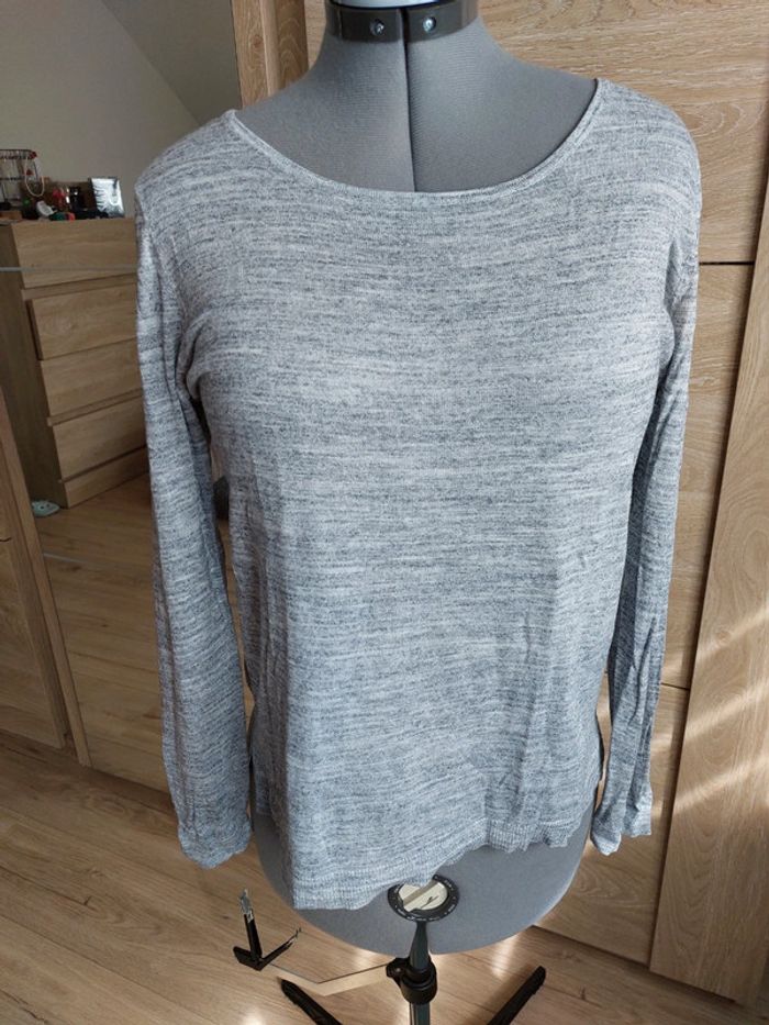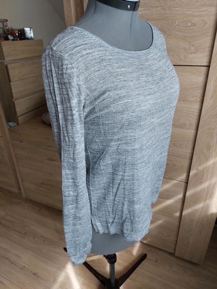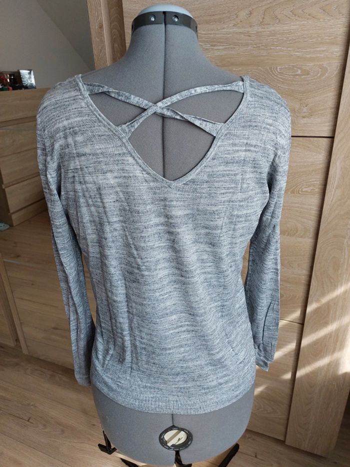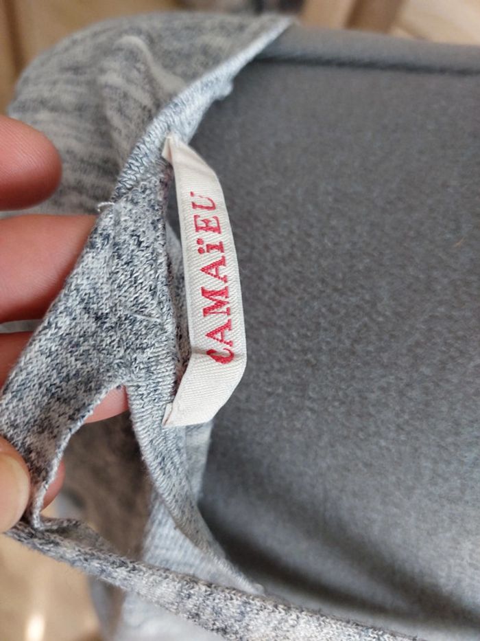 Pull fin Camaïeu gris clair chiné, t.42, avec un joli dos. Porté mais en très bon état.