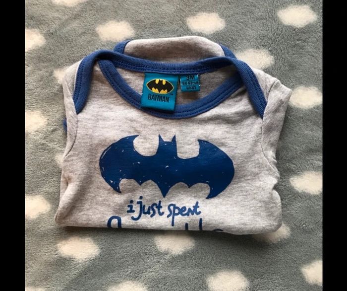 🌸 Body manches longues 3 mois Batman 👶 Excellent état N’hésitez pas à composer un lot avec d’autres articles de mon dressing 😉