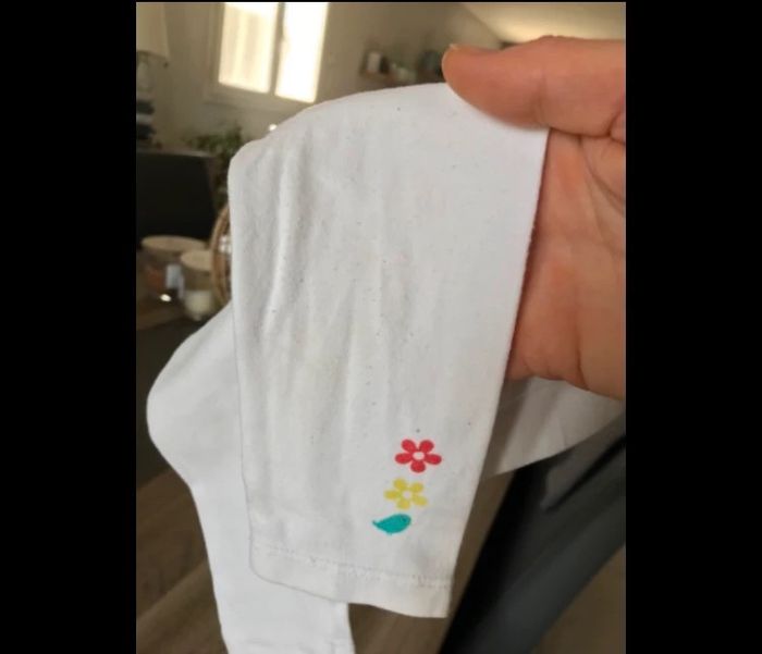 🌸 Legging 6 mois Orchestra blanc à fleurs Taché au niveau des genoux (voir photos) N’hésitez pas à composer un lot avec d’autres articles de mon dressing 😉