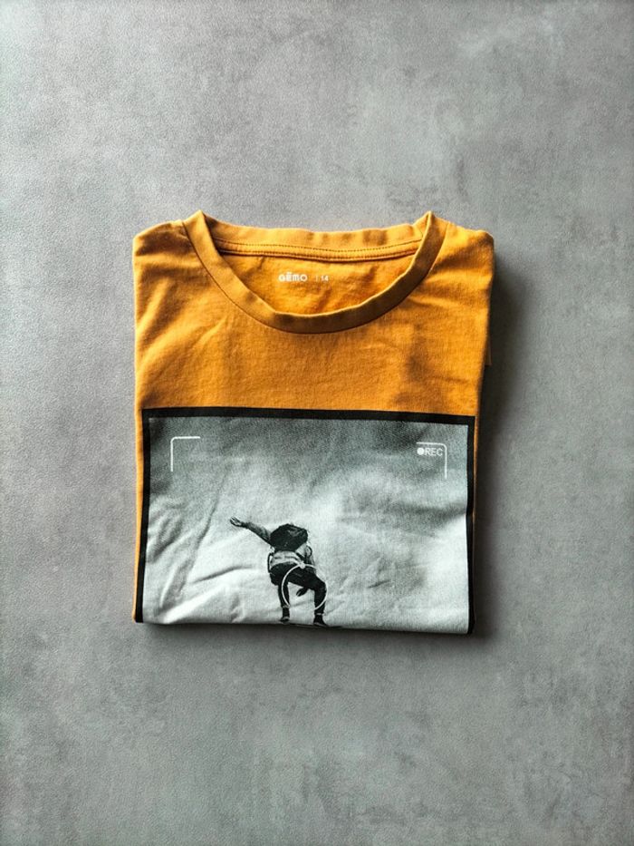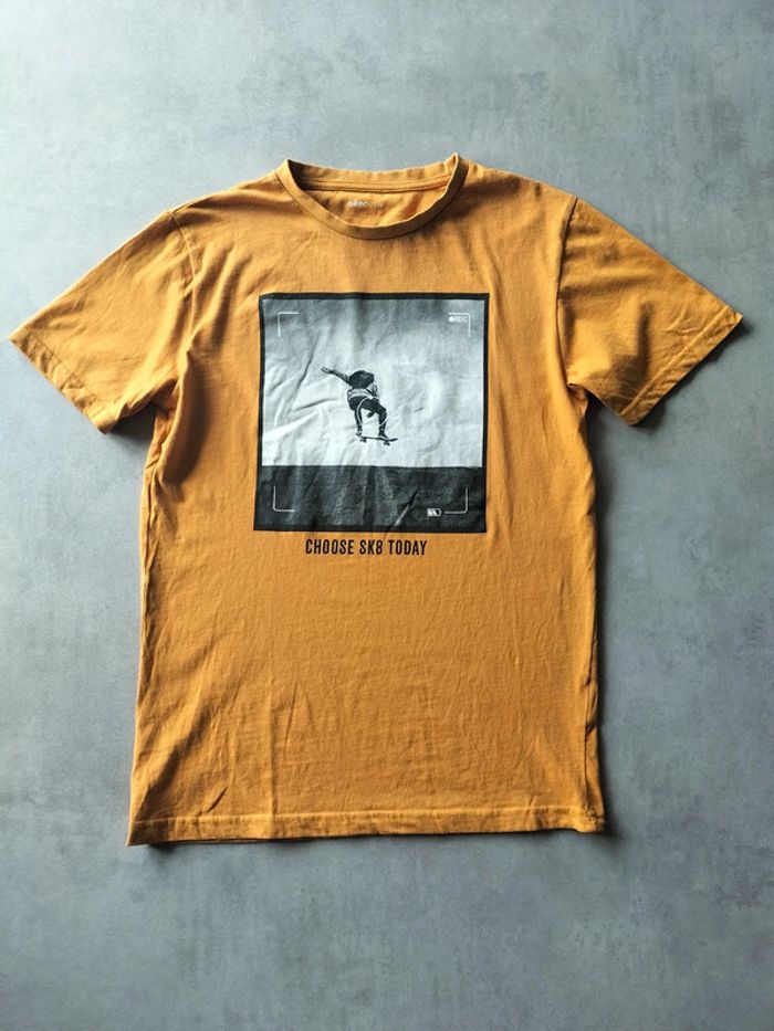 🛹 Look streetwear pour les amateurs de skate ! 📸 Imprimé photo noir et blanc avec skateur en pleine figure • Taille 14 ans • Marque : Gémo • Couleur : jaune moutarde • Col rond, manches courtes • Texte imprimé : "Choose SK8 Today" • Bon état général, pas de trou ni de tache 📦 Envoi possible avec soin ou remise en main propre à Saint-Herblain #tshirtgarçon #gémo #skatewear #modeado #streetstyle