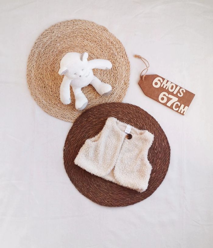 Gilet 👣 sans manche, un bouton, moumoute, Tex, 6 mois - photo numéro 1