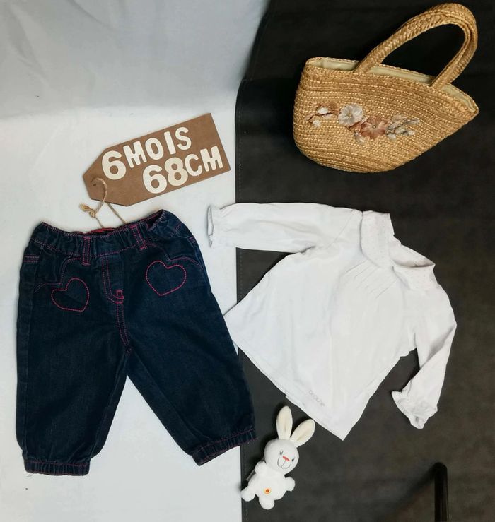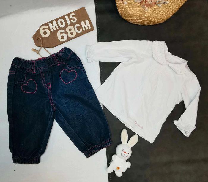 Ensemble  👣  tee-shirt manches  longues brioche et  pantalon jean 6mois/68cm - photo numéro 1