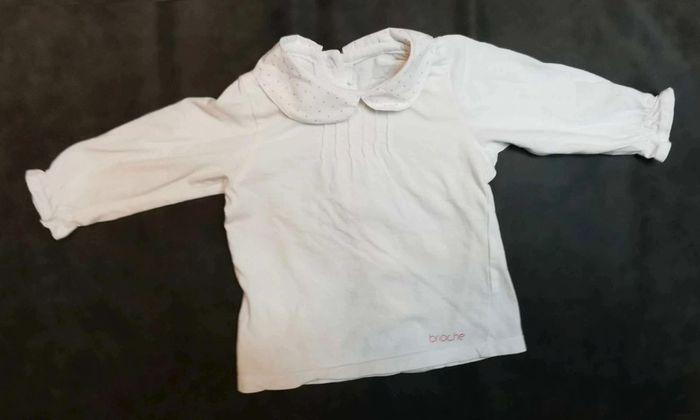 💫 Tee-shirt manches longues 💫 ✨ Blanc avec col blanc à points roses ✨ 5 pressions au dos ✨ Rétrécissement élastique au poignet, effet Froufrou ✨ Petit effet de volume au niveau du haut ✨ Brioche 💫 Pantalon jean 💫 ✨ Taille élastique ✨ Jolies Broderies roses Très bon état Ensemble composé par mes soins Pour une visite de mon dressing fille 6 mois, c'est ici 😉 : #stephanie89240fille6mois #fille #6mois #fille6mois #teeshirt #brioche