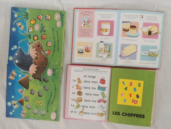 ✨La nouvelle imagerie des enfants✨ ▪️ Sommaire : en photo ▪️Couverture avec effet lenticulaire ▪️2 pages ' abîmées ' cf photo ▪️Coins abîmés ▪️Reste OK. ✨L'imagerie de l'éveil✨ ▪️Sommaire : Les couleurs, les lettres, les sons, les chiffres, les formes, les contraires, trier-ranger, associer, les différences, ça fait quoi, jeux en vrac ▪️RAS sur les pages ▪️Coins abîmés ✨ Dix petits escargots✨ ▪️Pour apprendre à compter ▪️De 10 à 1 ▪️ Pop up dernière page ▪️Pas d'écriture, déchirure... ▪️Coins un peu abîmés #stephanie89240livreenfant#stephanie89240livreenfant#stephanie89240livreenfant #stephanie89240livreenfantapprentissage #stephanie89240apprendre #limagerie #imagerie #compter